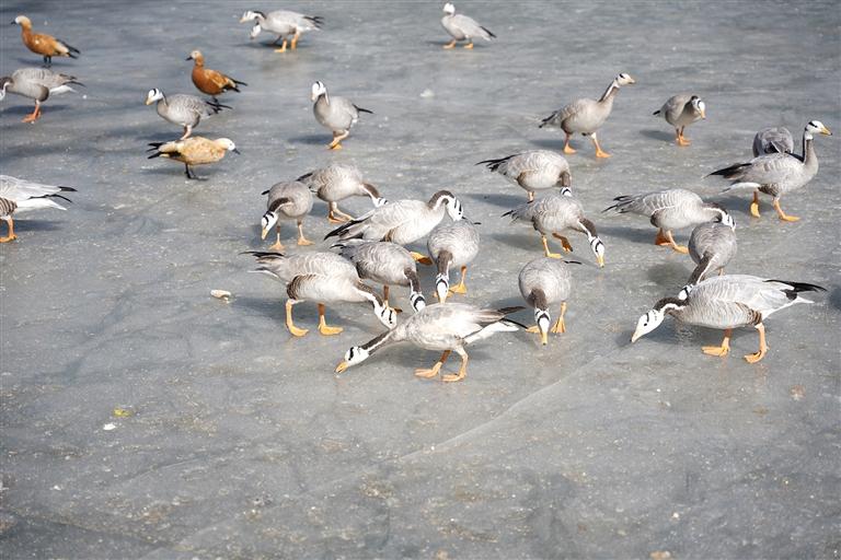 如果你想觀賞候鳥,可以前往拉薩3號壩橋,清澈的水面上候鳥聚集成群。米瑪頓珠和老伴站立在橋面上,靜靜欣賞著候鳥,時不時還有候鳥飛過他們的頭頂,在半空中盤旋一番,再落到水面。
