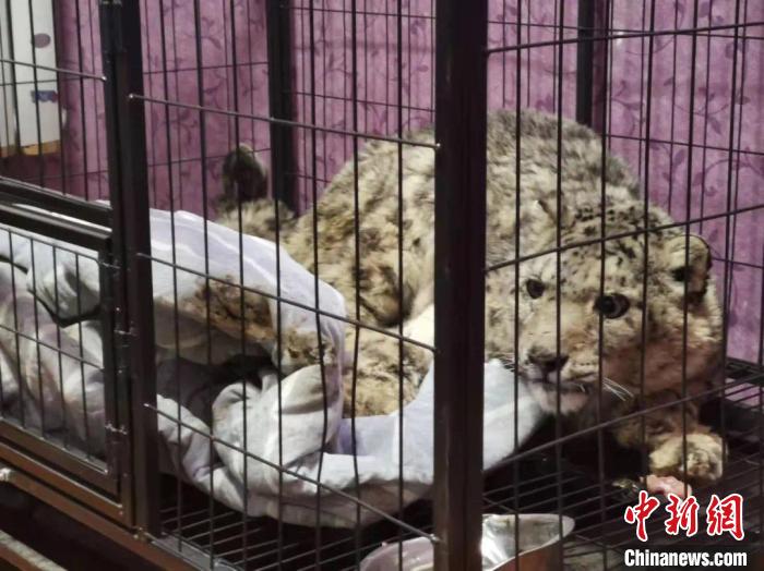 圖為受傷的雪豹等待救治。 張丹丹 攝