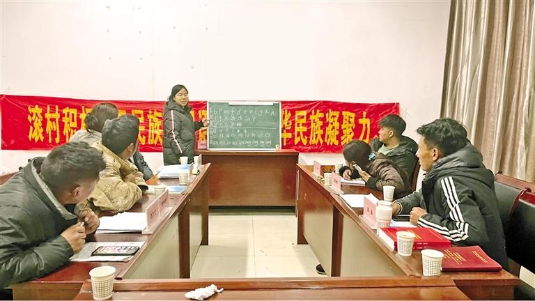 今年以來,駐朗縣洞嘎鎮(zhèn)滾村工作隊積極組織村“兩委”班子開展國家通用語言文字培訓(xùn),提升村干部運用國家通用語言文字能力,增強村干部服務(wù)群眾水平,不斷鑄牢中華民族共同體意識。