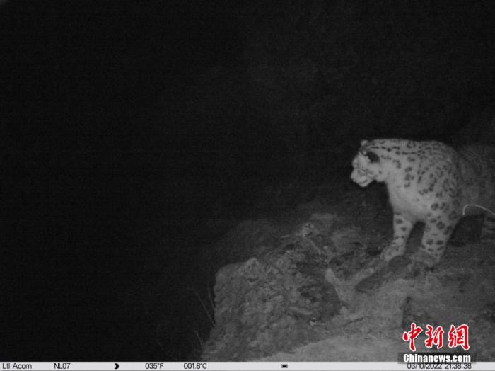 紅外相機監(jiān)測照片顯示,今年3月初,一只成年雪豹走到了一臺位于山脊線上的紅外相機觸發(fā)陷阱前面,對紅外相機展現(xiàn)出了極大的熱情,不斷上前用鼻子觸碰,并且在鏡頭前呼出了一股熱氣。