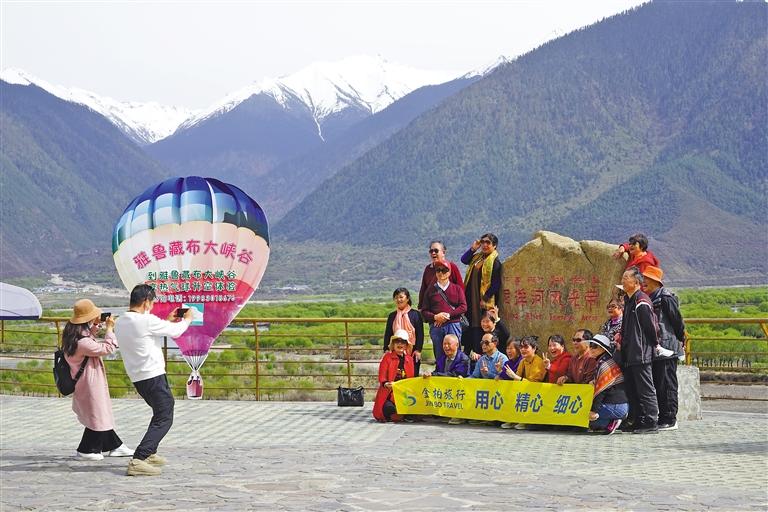 圖為游客在雅尼國家濕地公園合影。記者 益西加措 索央 攝