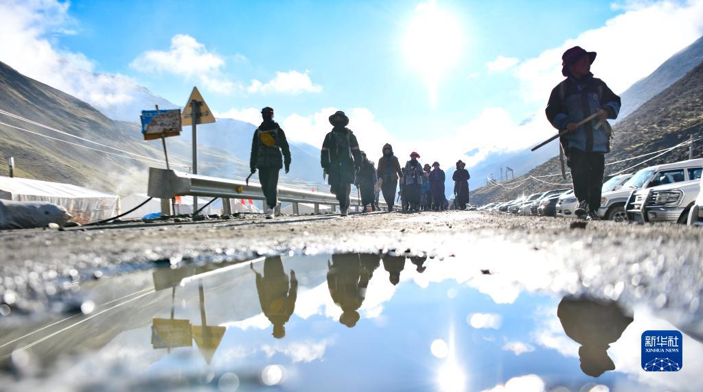 清晨,西藏那曲市比如縣良曲鄉(xiāng)然木塘村蟲草采集點(diǎn)的人們統(tǒng)一前往山上采集蟲草(5月26日攝)。新華社記者 晉美多吉 攝