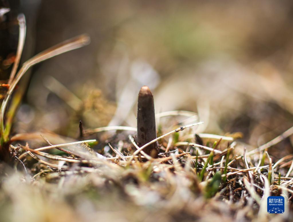 冒出尖頭的蟲草(5月25日攝)。新華社記者 姜帆 攝