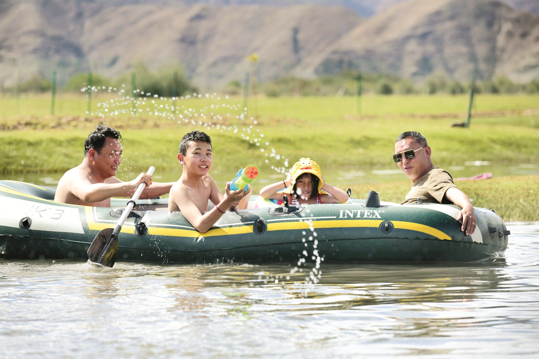 圖為過(guò)林卡的拉薩市民正在戲水。拉薩融媒記者 玉珠多杰攝