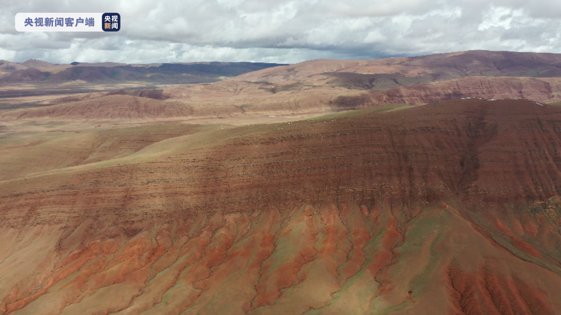為探索長江源區(qū)的地質(zhì)奧秘,中國地質(zhì)大學(武漢)長江源科考先遣隊對長江源區(qū)進行綜合科學考察時,在長江源區(qū)冬布里山日阿尺曲一帶發(fā)現(xiàn)一條紅色山脈,該山脈由晚白堊紀鈣質(zhì)膠結(jié)的粉、細砂巖與古近紀紫紅色、磚紅色復成分礫巖所組成。