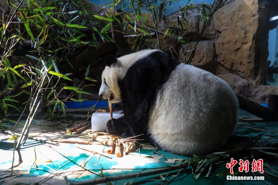 7月6日,四川成都動(dòng)物園,一只大熊貓?jiān)诒鶋K旁吃竹筍。當(dāng)日,成都市高溫天氣持續(xù)。 [詳細(xì)] -