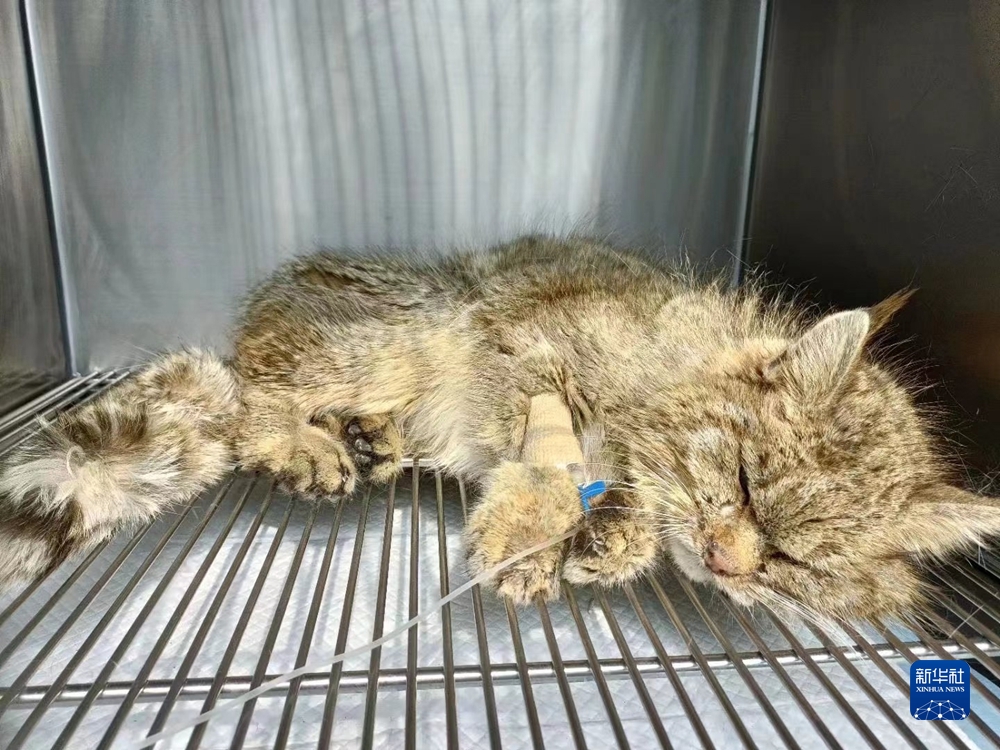 2022年3月21日,受救護的荒漠貓在青海野生動物救護繁育中心接受治療。新華社發(fā)(青海野生動物救護繁育中心供圖)