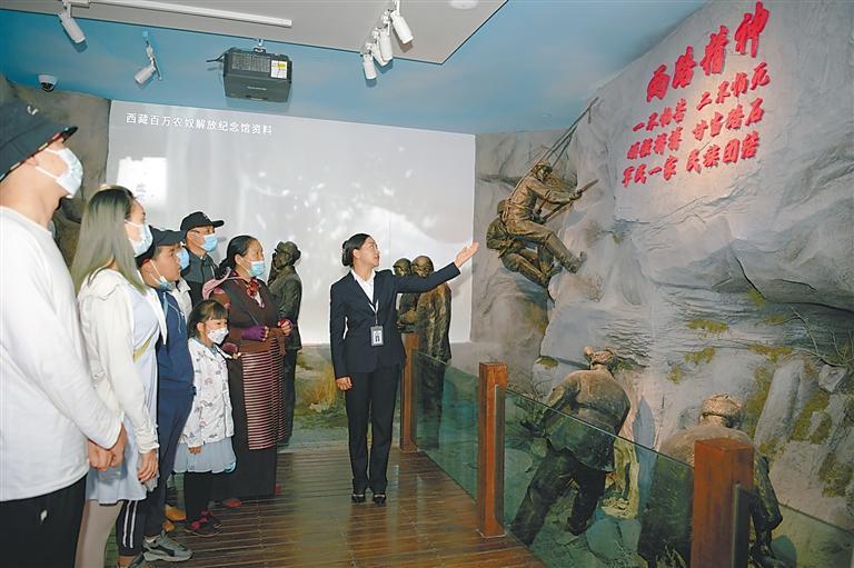 大力弘揚(yáng)“兩路”精神和老西藏精神,凝聚共創(chuàng)美好未來的強(qiáng)大奮進(jìn)力量。圖為2022年3月,西藏各族群眾參觀西藏百萬農(nóng)奴解放紀(jì)念館。