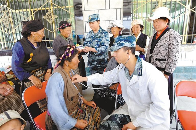 軍愛民、民擁軍,軍民團(tuán)結(jié)一家親。圖為駐藏某部官兵為當(dāng)?shù)厝罕娏x診。