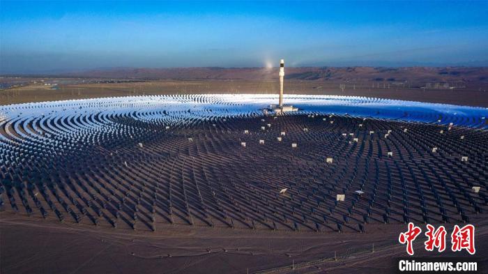 圖為10月16日,甘肅省敦煌市光電產(chǎn)業(yè)園區(qū)內(nèi),萬(wàn)余面定日鏡以同心圓狀圍繞著260米高的吸熱塔?!⊥醣筱y 攝