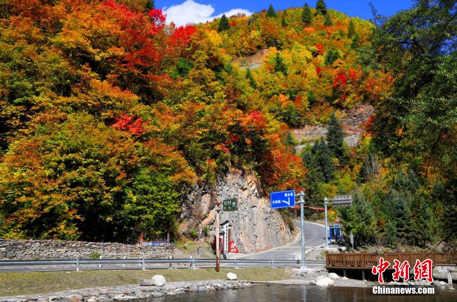 大紅、金黃、橙黃、墨綠、淺藍......秋意漸濃,輕風把四川阿壩州黑水縣3000多平方公里的林濤樹海慢慢渲染,從谷底到山巔,千樹萬葉將躍動的生命燃燒,留下最絢麗的身影,冰山彩林交相輝映;彩林湖泊浮光掠影,一派“樹樹皆秋色,山山似落暉”的壯美。黑水冰山彩林、卡龍溝彩林、奶子溝彩林等彩林區(qū)游覽面積達3000多平方公里,因面積大、色彩豐富而享有“亞洲之最”的美譽。圖為色彩斑斕的黑水彩林。 黑水縣委宣傳部 供圖