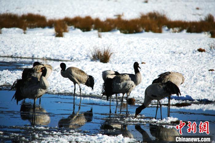 31日,2022年越冬黑頸鶴“先頭部隊”已抵達云南昭通大山包國家級自然保護區(qū)內的大海子濕地。