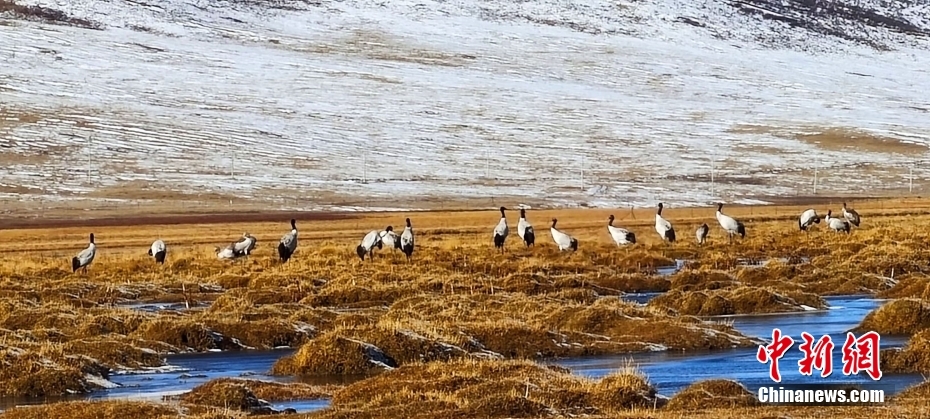 11月7日,記者從青海隆寶國家級自然保護區(qū)管理站獲悉,日前,隆寶灘黑頸鶴開始集群陸續(xù)遷往越冬地,開啟遷徙之旅。據(jù)介紹,隆寶灘黑頸鶴于每年10月初開始集群,10月中旬黑頸鶴陸續(xù)離開,一直持續(xù)至12月初越冬遷徙結(jié)束。遷徙黑頸鶴主要有保護區(qū)繁殖種群和遷徙停歇種群兩部分組成。圖為隆寶灘內(nèi)的黑頸鶴。圖/文:才仁羅松 李江寧
