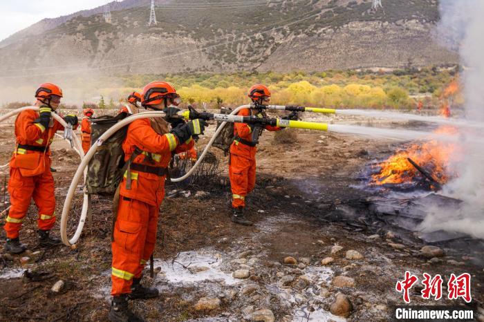 圖為林芝市2022年處置森林火災(zāi)應(yīng)急演練現(xiàn)場?!钣例垺z