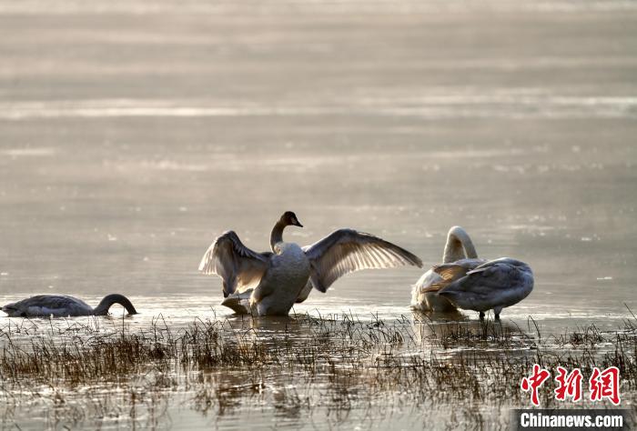 天鵝等多種野生鳥(niǎo)類“抵達(dá)”青海格爾木濕地越冬