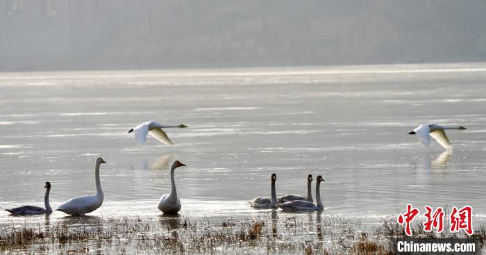 圖為青海省海東市化隆縣黃河流域的天鵝?!±钣穹?攝