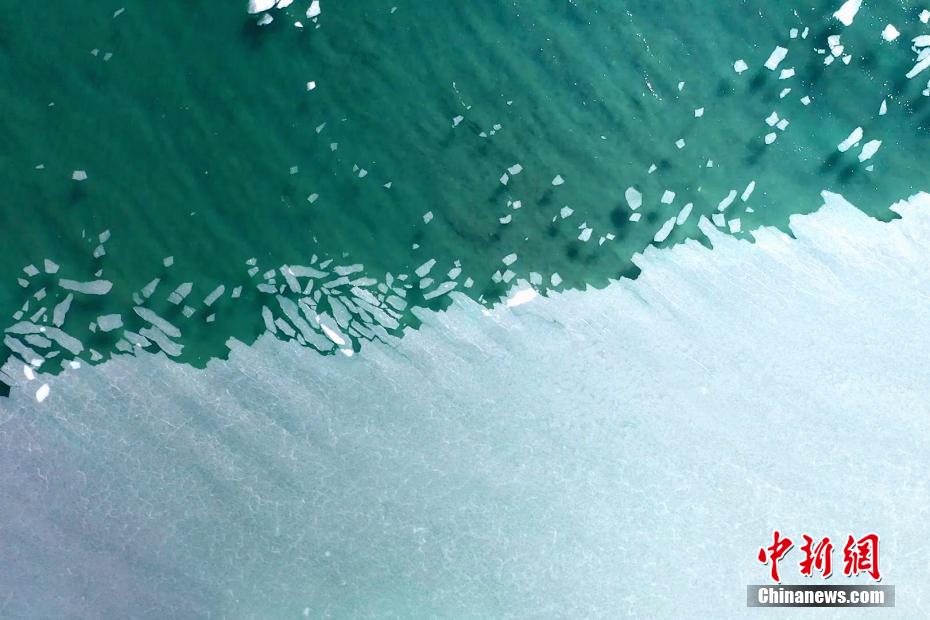 近日,素有“高原藍(lán)寶石”之稱的青海湖開始進(jìn)入冰封期。青海湖水體周邊的零星結(jié)冰,青海湖西部邊緣、北部湖岸區(qū)、鳥島、青海湖斷崖等地出現(xiàn)成片結(jié)冰區(qū)。航拍畫面中可以看到湖心范圍尚有大面積未結(jié)冰區(qū)域。青海湖是中國最大的內(nèi)陸咸水湖。冬日里的青海湖,寧靜而內(nèi)斂。千里冰封,宛如童話世界。封凍的湖面如同破碎的“玉帶”,形成獨(dú)特的景觀。張世偉 攝