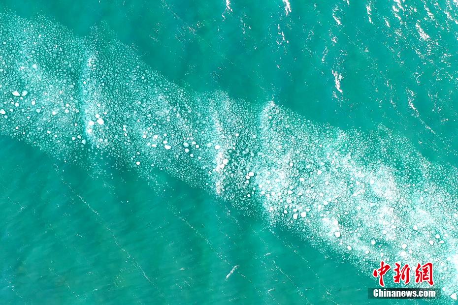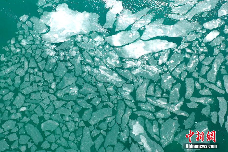 青海湖湖面封凍如破碎“玉帶”