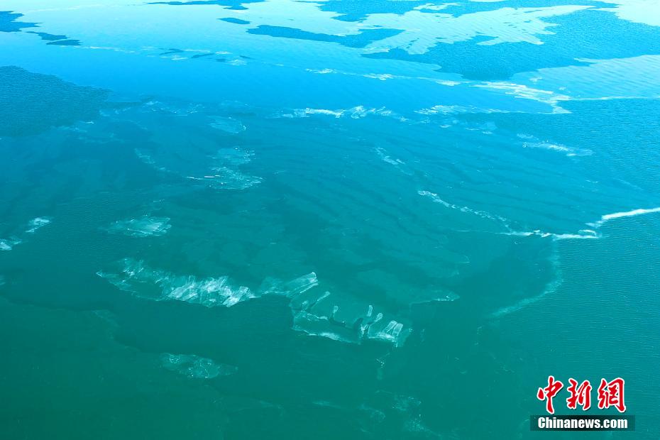近日,素有“高原藍寶石”之稱的青海湖開始進入冰封期。青海湖水體周邊的零星結冰,青海湖西部邊緣、北部湖岸區(qū)、鳥島、青海湖斷崖等地出現(xiàn)成片結冰區(qū)。航拍畫面中可以看到湖心范圍尚有大面積未結冰區(qū)域。青海湖是中國最大的內陸咸水湖。冬日里的青海湖,寧靜而內斂。千里冰封,宛如童話世界。封凍的湖面如同破碎的“玉帶”,形成獨特的景觀。張世偉 攝