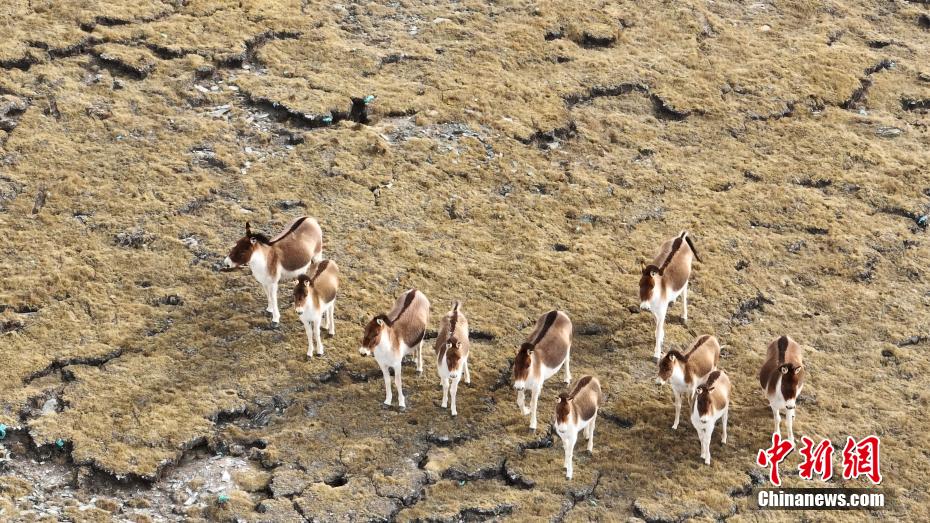 高原初春,馬鹿、藏野驢、藏狐等野生動(dòng)物在祁連山國(guó)家公園青海片區(qū)天峻縣境內(nèi)草場(chǎng)上覓食、棲息,悠閑自在。青海省海西蒙古族藏族自治州天峻縣大部地處祁連山國(guó)家公園青海片區(qū),近年來(lái),該縣開(kāi)展生態(tài)環(huán)境綜合治理,生態(tài)環(huán)境持續(xù)改善,珍稀野生動(dòng)物種群數(shù)量不斷增加。圖為航拍成群的藏野驢在天峻縣草場(chǎng)上覓食棲息。