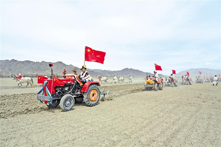 3月16日,日喀則市年楚河兩岸的農(nóng)區(qū)迎來一年一度的開耕儀式,耕地機(jī)、旋耕機(jī)的轟鳴聲打破了高原田野的寧靜。