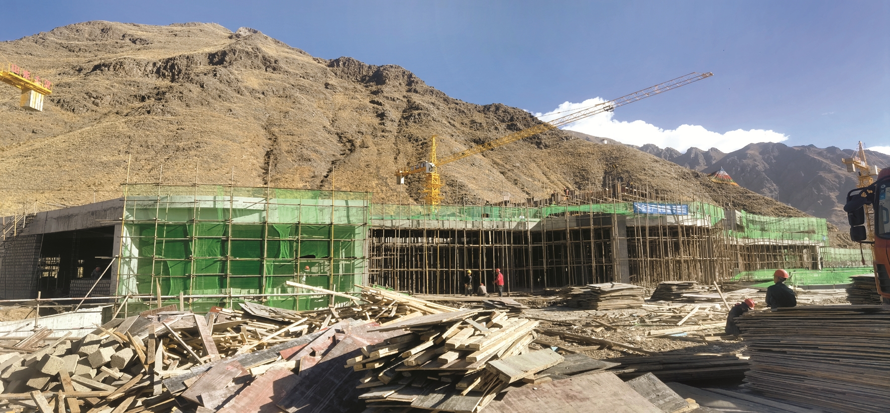 堆龍德慶區(qū)民族團(tuán)結(jié)主題公園位于堆龍德慶區(qū)人和立交以北,相鄰堆龍德慶區(qū)濱河體育公園,項(xiàng)目總投資1.7億元,用地面積101畝,分兩期建設(shè);項(xiàng)目于今年2月27日正式復(fù)工,目前已完成總工程量的60%。記者在施工現(xiàn)場(chǎng)看到,3座塔吊來回調(diào)運(yùn)材料、工人們分工配合、運(yùn)輸車來來回回,一派熱火朝天的建設(shè)景象。