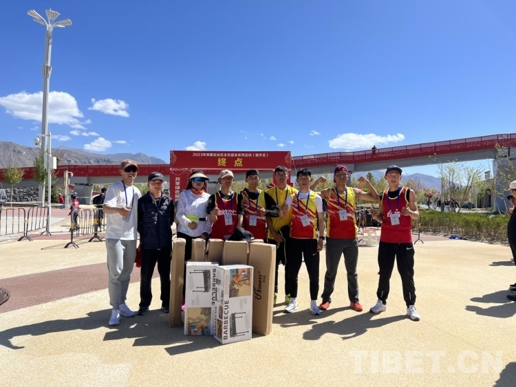 隨后其他組也紛紛來到終點,憑自己的名次到各個領(lǐng)獎處拿獎勵,拍紀念照,現(xiàn)場十分熱鬧?!拔覀兪潜备叩膶W生,通過體育老師得知這個活動,便報名參賽,活動很有意義,不僅對強身健體有幫助,還能帶動全民健身的氛圍,”在健步走活動中獲得第六組第一名的拉薩市北京高級中學學生旦增美朗說。