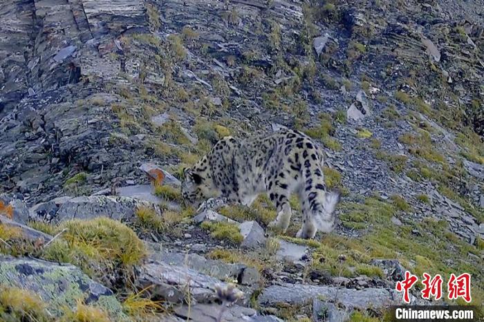 紅外線相機(jī)拍到的國家一級(jí)保護(hù)動(dòng)物雪豹活動(dòng)影像?!⌒慢埧h林業(yè)和草原局供圖
