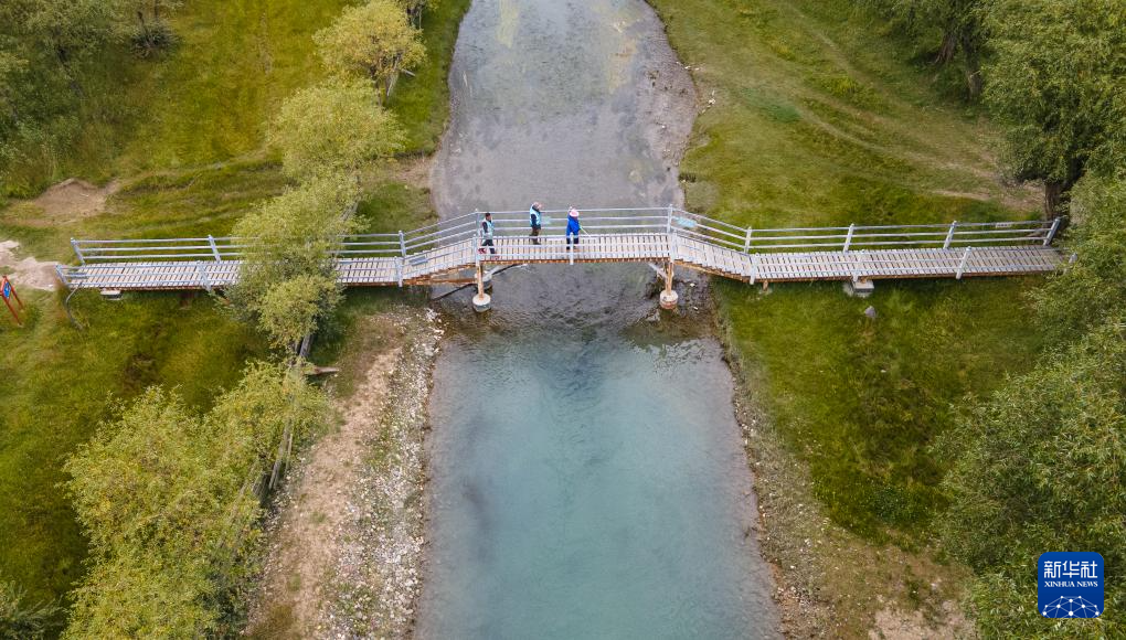 雅尼國(guó)家濕地公園管護(hù)員在巡護(hù)途中(無人機(jī)照片,9月8日攝)。新華社發(fā)(丁增尼達(dá) 攝)