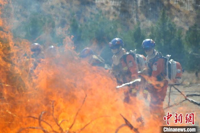 圖為防滅火實戰(zhàn)演練現場。拉薩市森林消防大隊 供圖