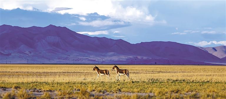 在羌塘國家級自然保護區(qū)內行走的藏野驢。通訊員 邊巴多吉 攝