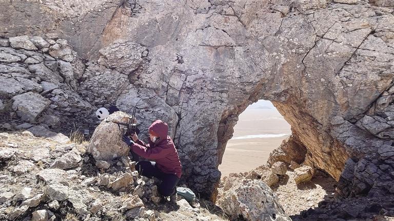 姜楠在布設(shè)紅外相機(jī)。圖由姜楠提供