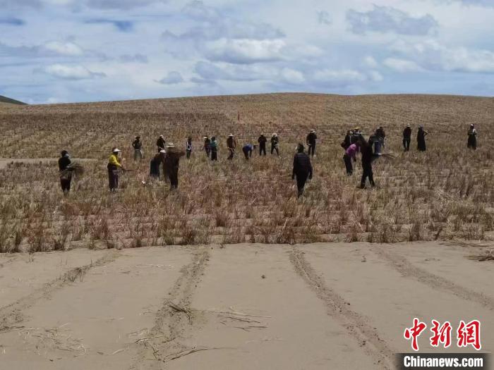 圖為牧民與企業(yè)工作人員參與阿尼瑪卿水源涵養(yǎng)與草原生態(tài)保護(hù)修復(fù)項(xiàng)目?!」逯莠斍呖h自然資源和林業(yè)草原局 供圖