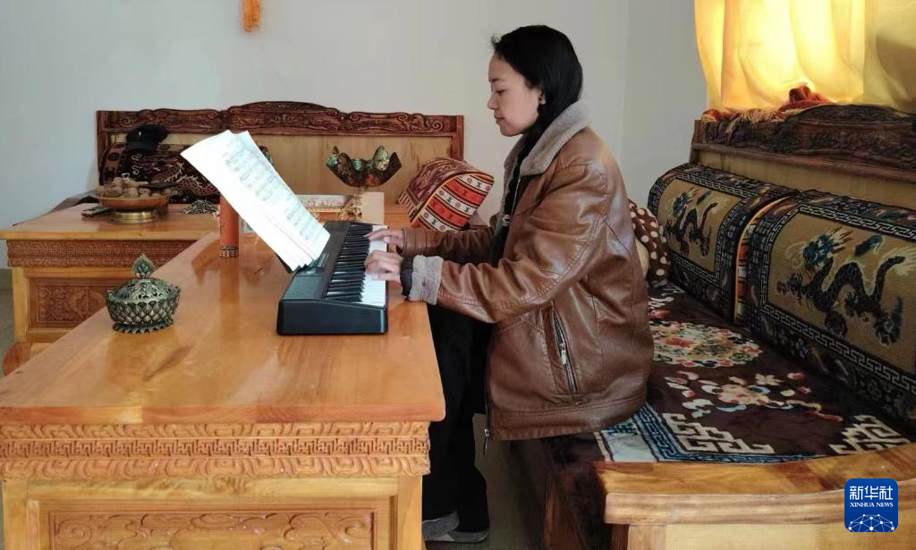 走進(jìn)西藏林芝市察隅縣上察隅鎮(zhèn)永寧村一戶村民家里,藏式茶幾上的電子琴引人矚目,一旁展開的五線譜本上寫滿了筆記。