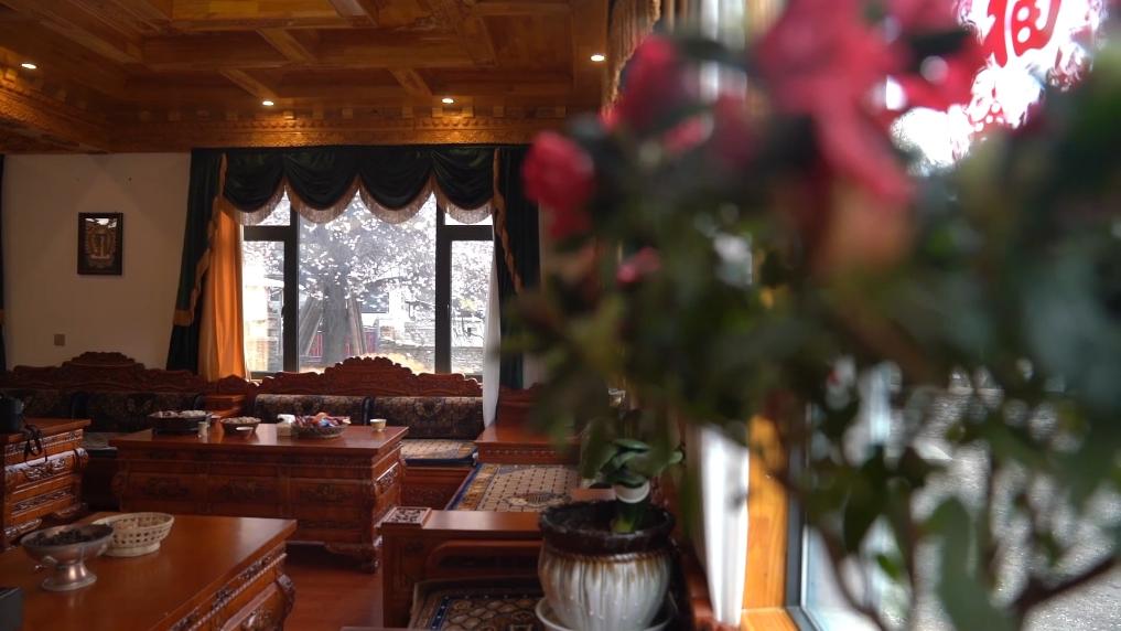 下午4點,林芝市波密縣傾多鎮(zhèn)古通村,遠來的游客入住到村民洛松頓珠開辦的民宿。寬敞的客廳里,藏式家具整齊大氣,窗外古老的桃花樹隨風(fēng)散落著陣陣花雨。