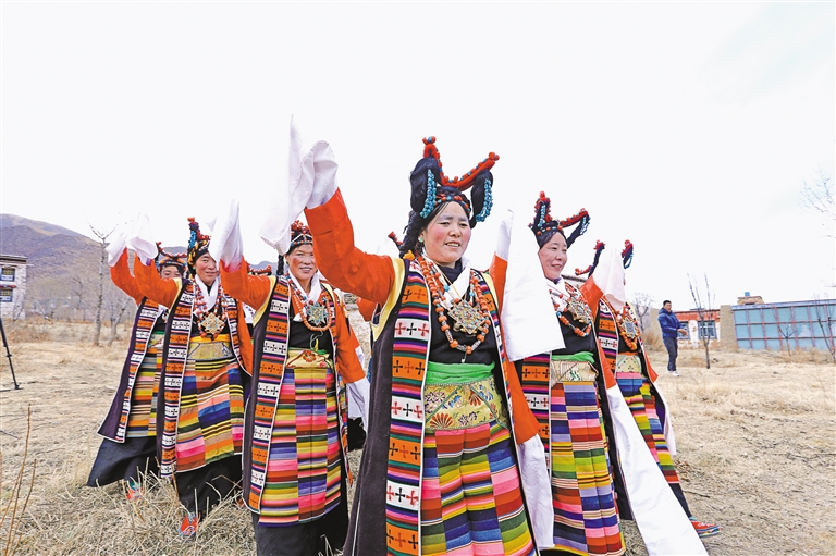 “如今,這支隊(duì)伍已發(fā)展到20多名成員,都是當(dāng)?shù)厝罕姟K囆g(shù)隊(duì)經(jīng)常受邀參加各種大小晚會(huì)、重要節(jié)日演出和赴區(qū)內(nèi)外非遺展演等,其影響力和傳播力不斷提升,特別是甲瑪諧欽《和親路》受到廣泛歡迎?!奔赚斷l(xiāng)工作人員德吉卓嘎說。