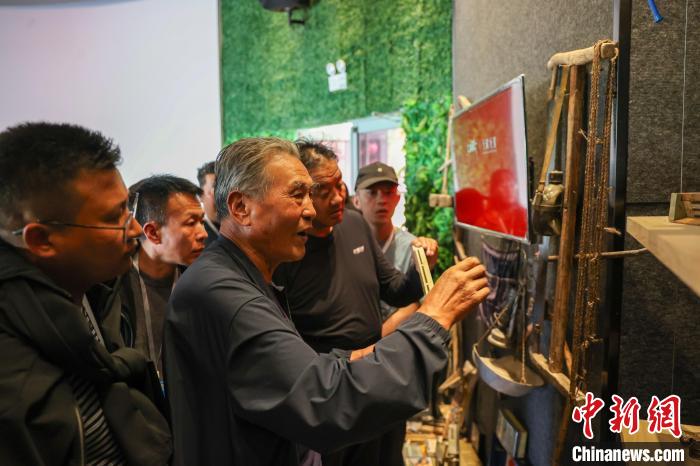 9月24日,記者跟隨2024年青海湖生態(tài)保護(hù)能力提升培訓(xùn)班來到青海省海南藏族自治州貴德縣青海青藏蜜蜂良種養(yǎng)殖場,采蜜人為學(xué)員介紹采蜜工具。中新社記者 薛蒂 攝