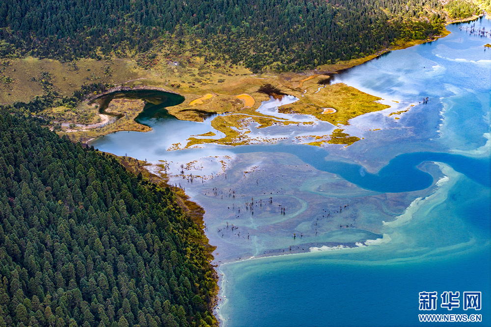 林芝市八一鎮(zhèn)境內拍攝的措木及日(無人機照片)。新華網(wǎng) 旦增努布 攝
