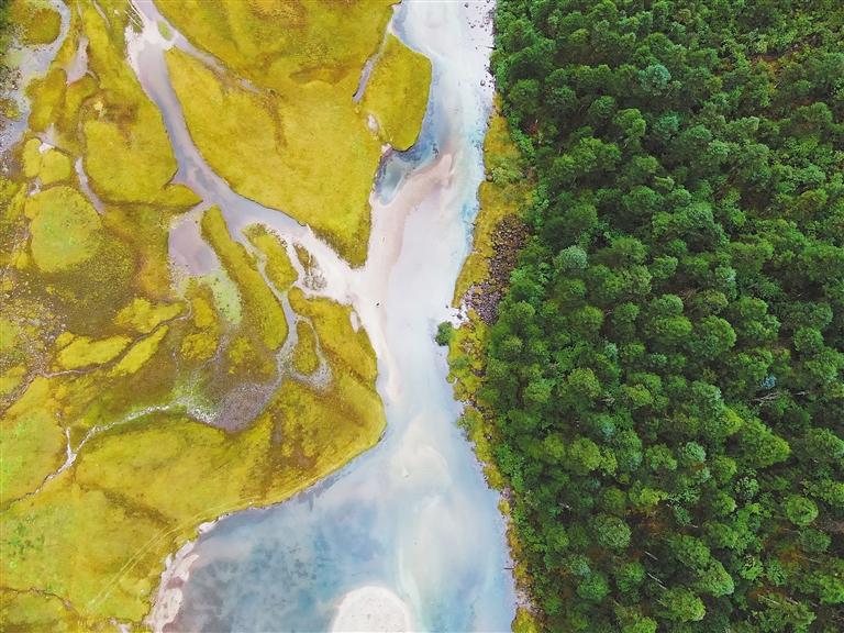 圖為航拍林芝市巴宜區(qū)魯朗鎮(zhèn)達(dá)才錯附近的森林與濕地風(fēng)景。文/圖 記者 謝筱純 王珊