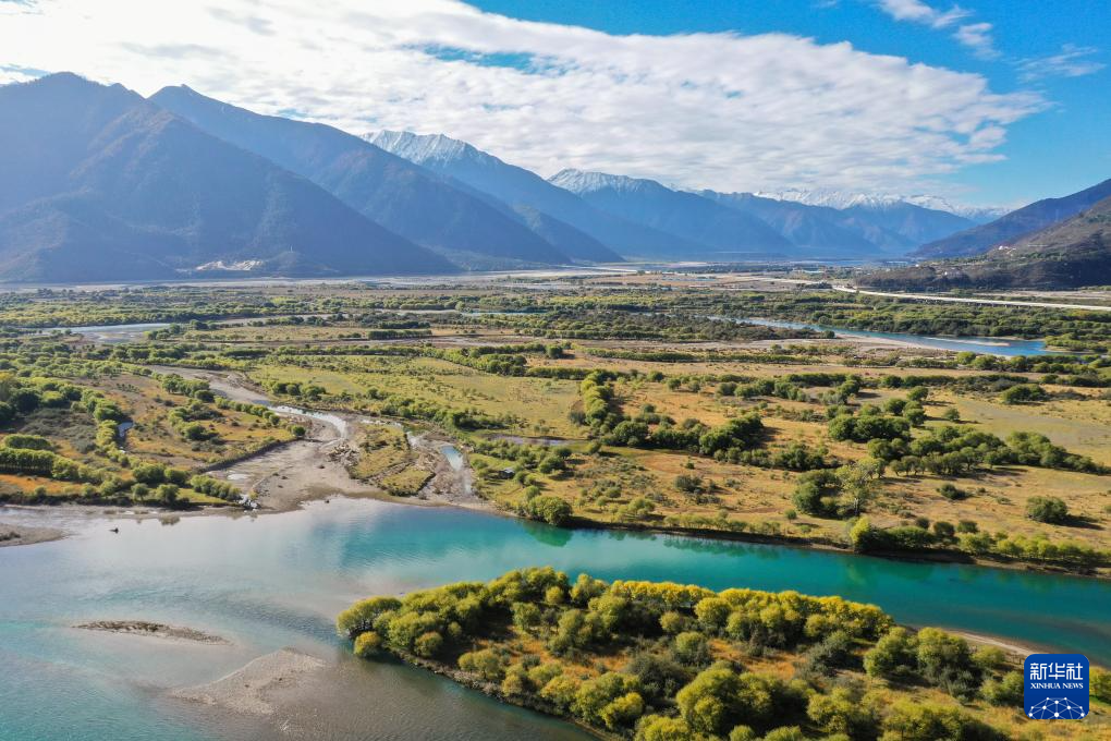 這是在林芝雅尼國家濕地公園尼洋河畔拍攝的生態(tài)監(jiān)測系統(tǒng)(10月24日攝,無人機照片)。新華社記者 劉天宇 攝