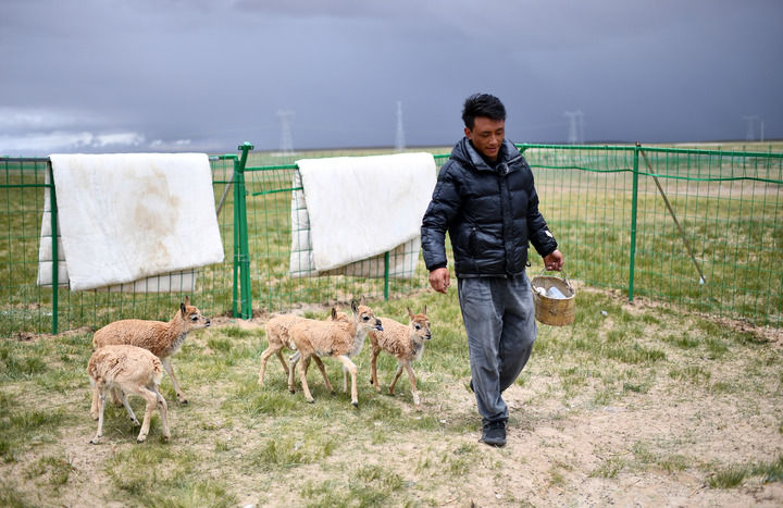 在索南達(dá)杰保護(hù)站駐站的巡山隊(duì)員江措告訴記者,在保護(hù)站后面的網(wǎng)圍欄內(nèi),有隊(duì)員們從卓乃湖救助回來的小藏羚羊。