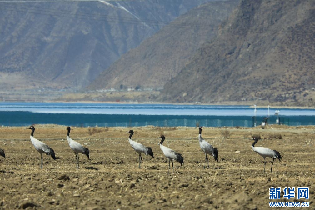 3月4月,在西藏墨竹工卡縣境內(nèi)拍攝的黑頸鶴。新華網(wǎng)發(fā) 洛克 攝