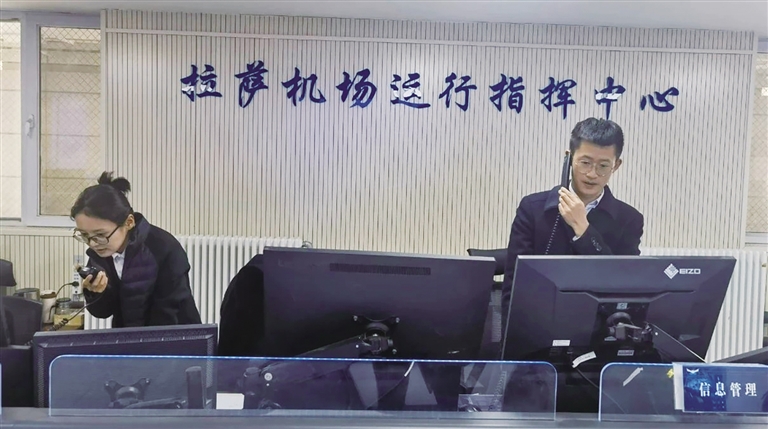 拉薩貢嘎國際機(jī)場運(yùn)行指揮中心緊急調(diào)度機(jī)位,保障旅客轉(zhuǎn)機(jī)。圖片由 張偉 提供