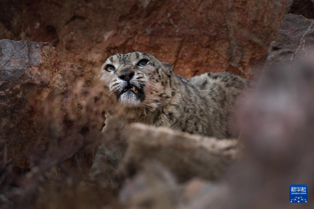 西藏阿里改則縣改則鎮(zhèn)玉多村附近巖山區(qū)域拍攝到的國家一級保護(hù)動物雪豹(4月18日攝)。新華社發(fā)(索朗仁青 攝)