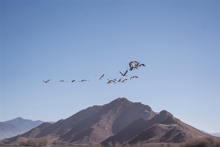 寒冬到來(lái),雅江中游河谷黑頸鶴國(guó)家級(jí)自然保護(hù)區(qū)林周澎波區(qū)域迎來(lái)大批越冬黑頸鶴。作為國(guó)家一級(jí)保護(hù)動(dòng)物、高原特有珍稀物種——黑頸鶴,2025年6月被正式評(píng)為拉薩市鳥(niǎo),成為城市生態(tài)文化名片。它們?cè)诖笋v足棲息、覓食嬉戲,勾勒出一幅人與生靈和諧共生的美好圖景。林周縣以制度護(hù)航、全民參與、科學(xué)管護(hù)等方式筑牢保護(hù)屏障,讓“高原仙子”安穩(wěn)越冬,用種群遞增印證高原生態(tài)保護(hù)實(shí)效。