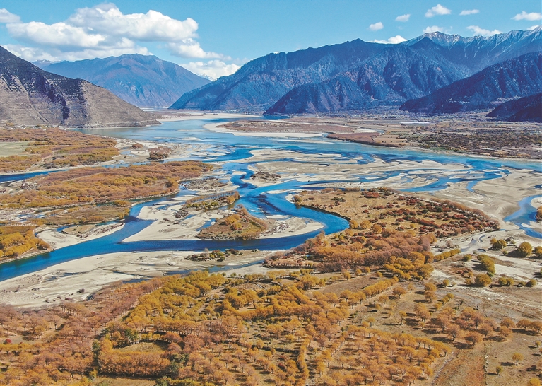 圖為林芝市巴宜區(qū)尼洋河生態(tài)景觀帶沿線風光。記者 劉楓 攝