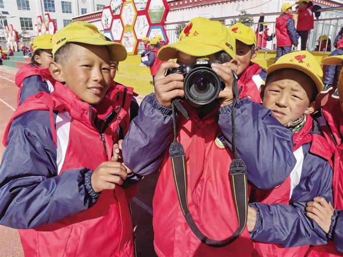 草原上的孩子“野”慣了,熱愛足球,旺杰群培老師便加入進(jìn)來,給他們帶去了一節(jié)足球課。小小的足球,載著孩子們大大的夢(mèng)想;他們喜歡音樂,仁增老師就帶著充滿詩情畫意的民謠歌曲,還有節(jié)奏感十足的舞蹈來到這里,跟孩子們熱情互動(dòng);要培養(yǎng)孩子們的國學(xué)情懷,陳明桃老師花費(fèi)心思備課,設(shè)計(jì)方案,精彩的課程最終贏得了陣陣掌聲;美術(shù)能讓孩子們天馬行空的思維得到釋放,年輕的范思宇就帶著草原的驕傲——亞運(yùn)圣火采集女神像來到課堂上,和孩子們一起描繪心中最美“女神”……大朋友用一節(jié)節(jié)精彩的課程帶著小朋友感知美好世界