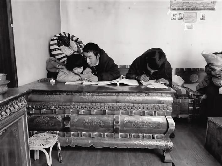 次仁羅布到縣里讀小學(xué)時(shí),父母賣掉了村里的房子,陪他一起去了縣城,為了節(jié)省一點(diǎn)開支,將次仁羅布的弟弟和外甥女留在叔叔家中。到了縣城以后,他們租了一間只能容下三個(gè)人的小房子,就這樣父母陪他度過(guò)了一年的學(xué)習(xí)生活。為了改善家庭的經(jīng)濟(jì)狀況,父母也開始到各個(gè)地方擺攤做起了小生意,到處奔波了六年,才在縣城里蓋了一個(gè)小木房。