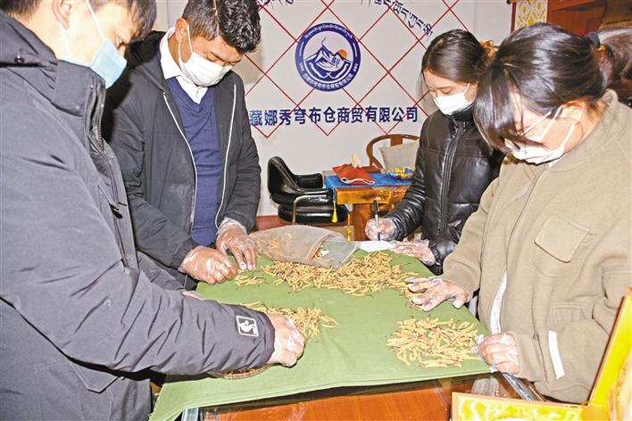 穹布倉大學(xué)生創(chuàng)業(yè)者正在包裝藏藥蟲草茶。