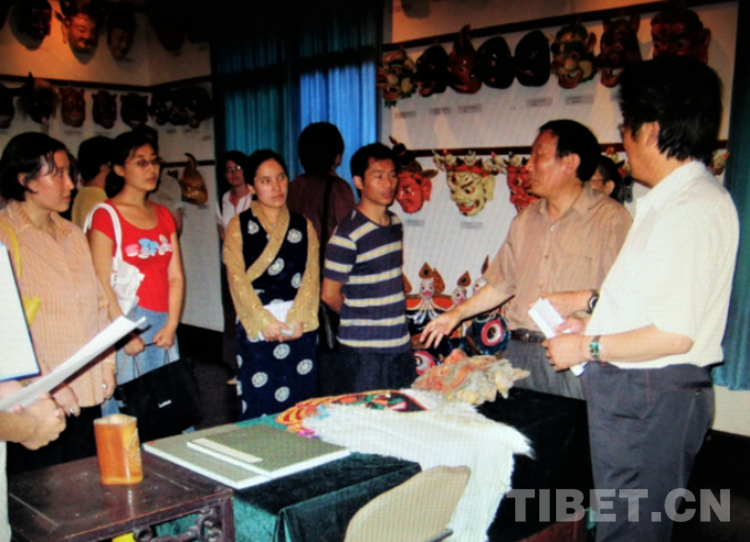 圖為2006年6月,在西南民大博物館《格薩爾》展室,楊嘉銘先生(右二)熱情解答參觀者提問。